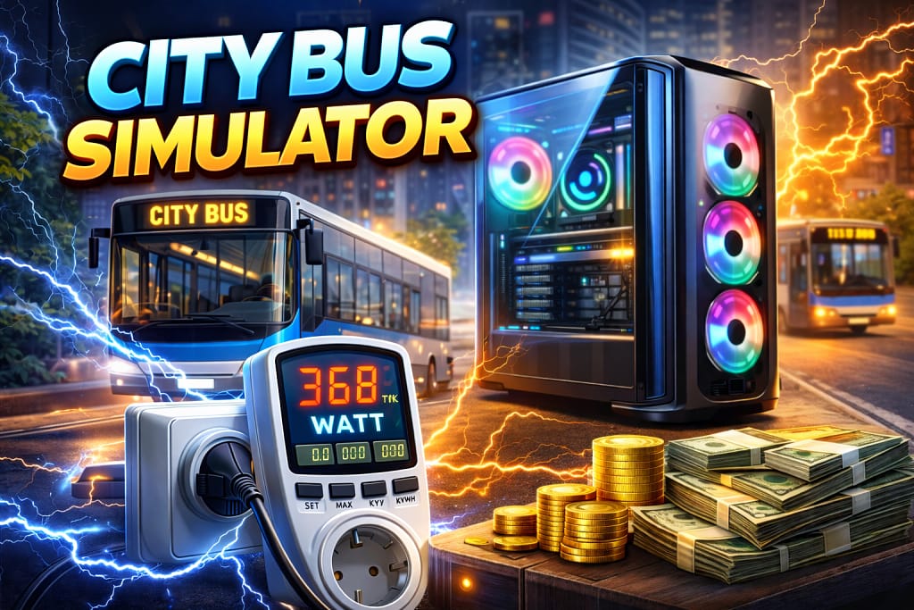 City Bus Simulator oynarken bilgisayarın elektrik tüketimi, simülasyon oyunları için beklenen ancak göz ardı edilmemesi gereken bir seviyededir.