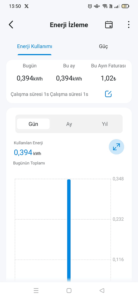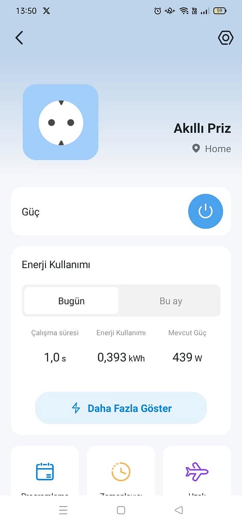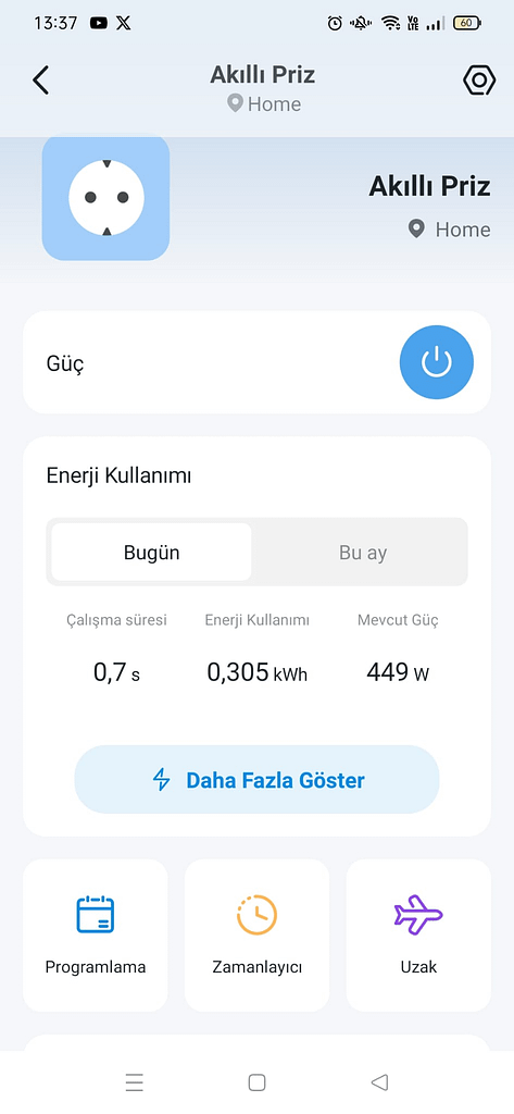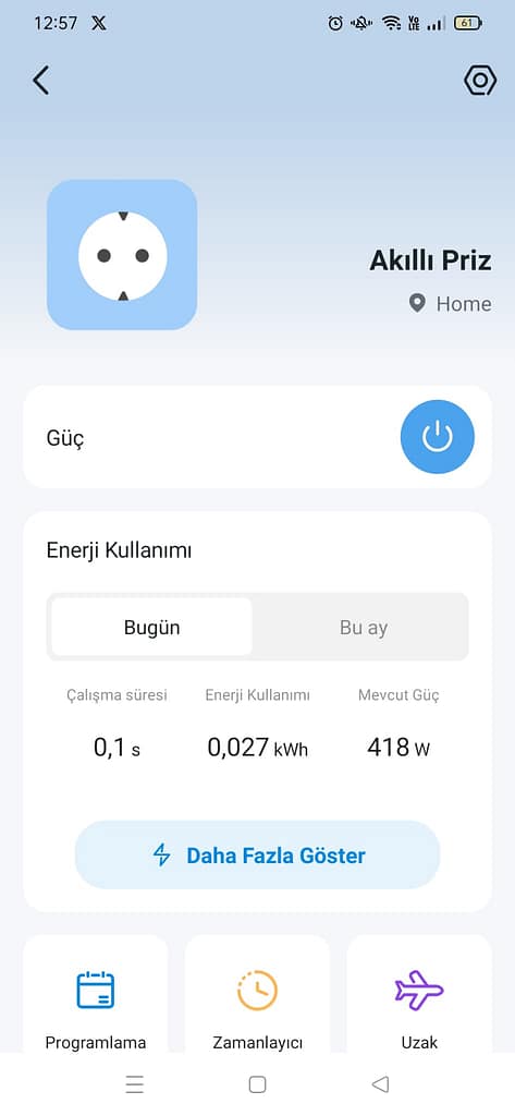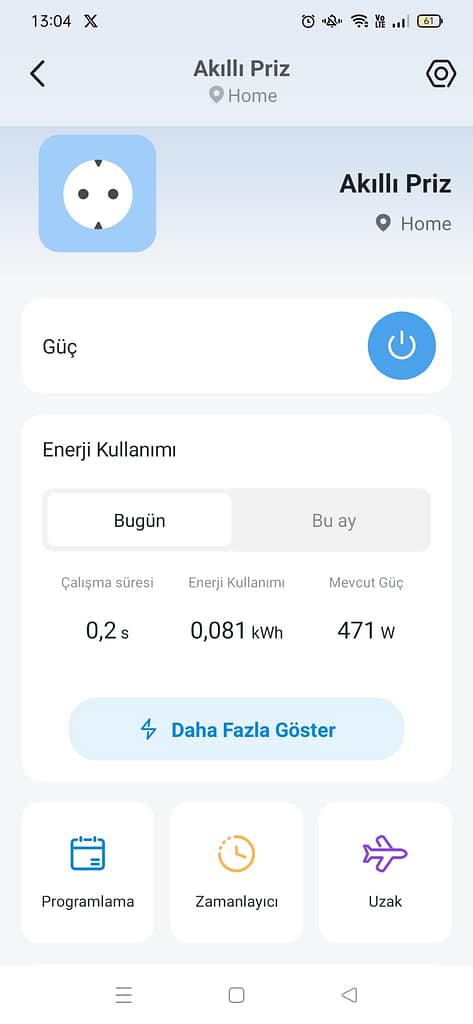 Doğru veriler elde etmek için TP-Link Tapo P115 enerji izlemeli akıllı priz kullandık. Bu cihaz sayesinde anlık güç tüketimini watt (W) cinsinden ve toplam tüketimi kilowatt-saat (kWh) cinsinden takip ettik.