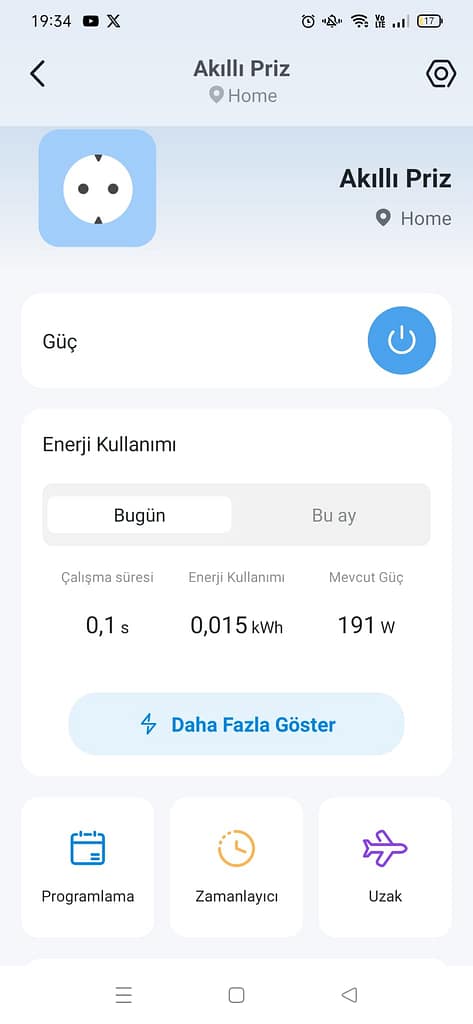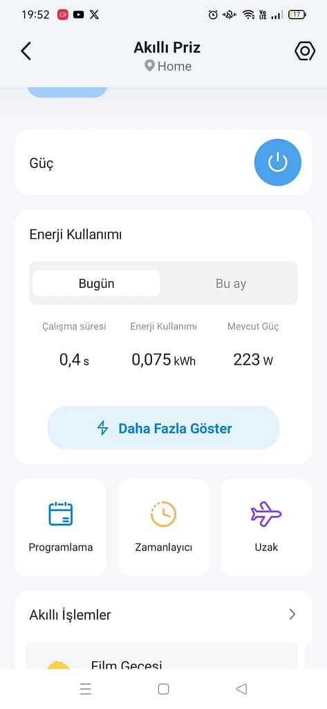 Doğru veriler elde etmek için TP-Link Tapo P115 enerji izlemeli akıllı priz kullandık. Bu cihaz sayesinde anlık güç tüketimini watt (W) cinsinden ve toplam tüketimi kilowatt-saat (kWh) cinsinden takip ettik.